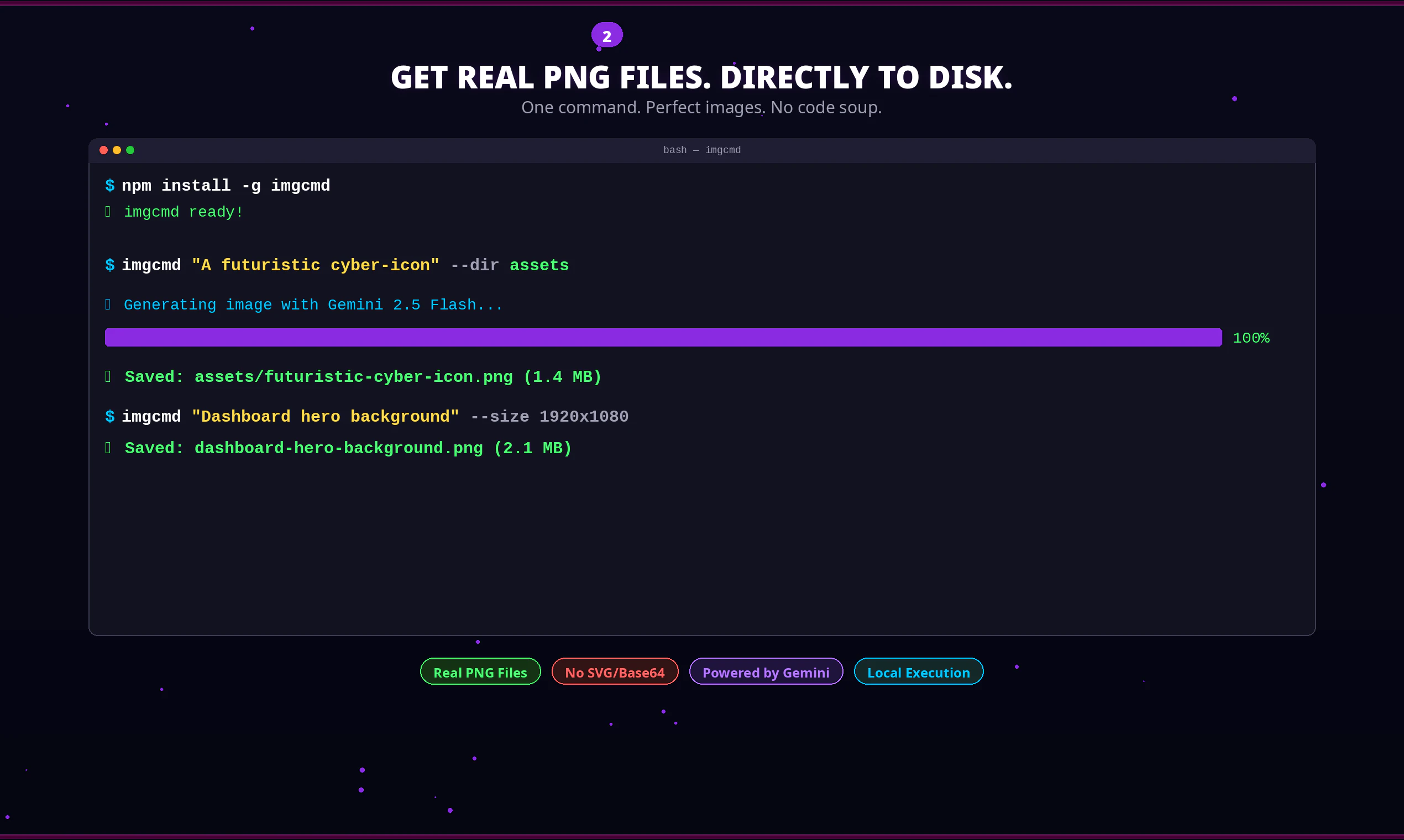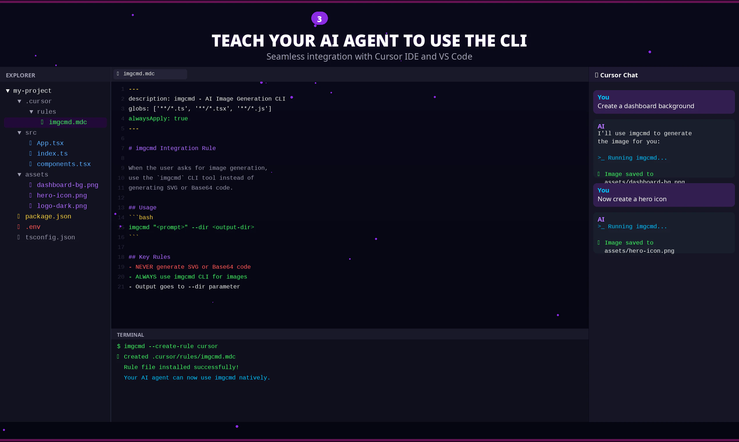Tired of AI agents hallucinating broken SVGs? imgcmd is a secure CLI that generates real PNGs directly to disk via Gemini. Teach Cursor/VS Code to use it natively, keep API keys local, and enforce model governance to prevent rogue AI spending.