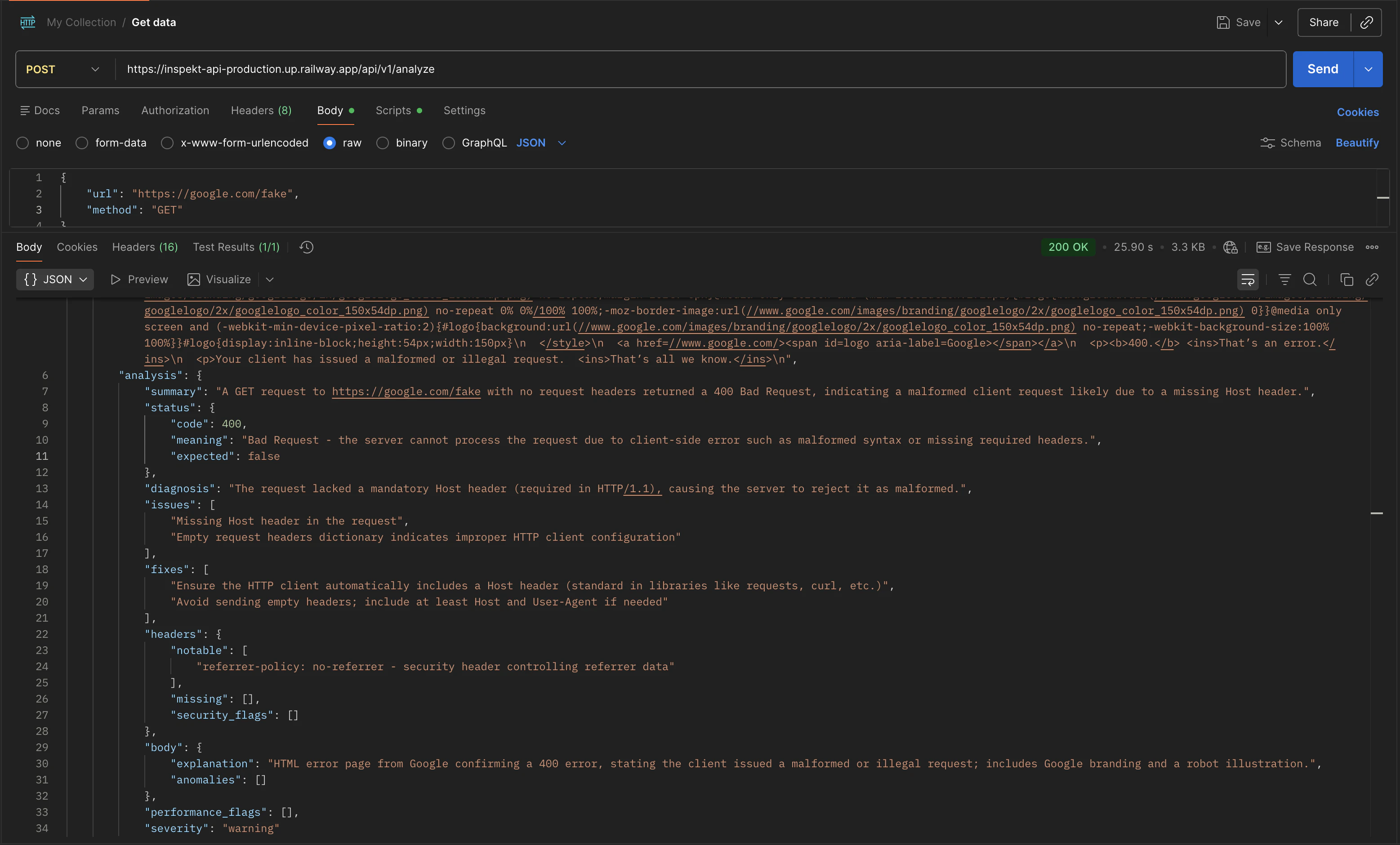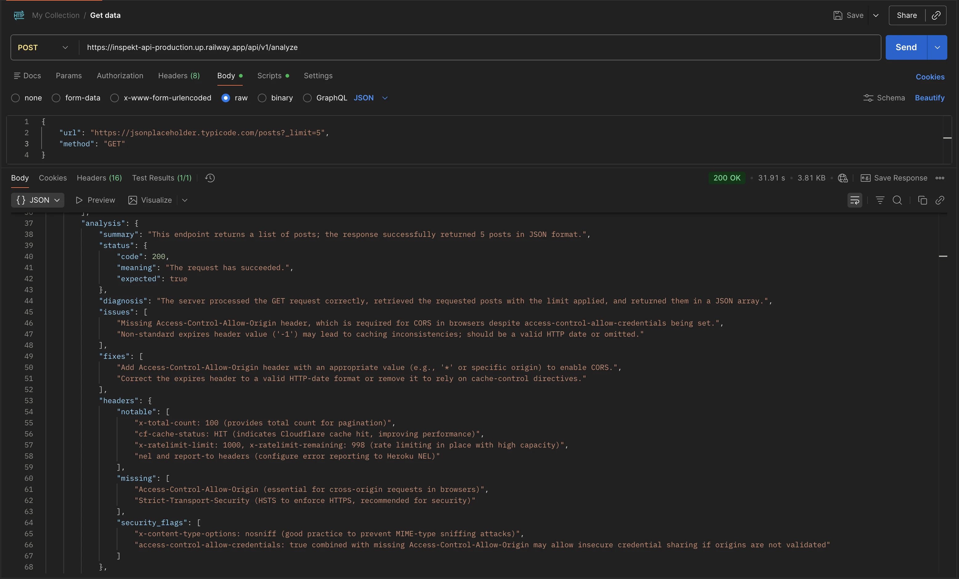 Inspekt is a TypeScript-native proxy that diagnoses API errors in real-time. Instead of just returning raw data, it uses AI to analyze headers, status codes, and bodies to provide actionable fixes for 4xx/5xx errors