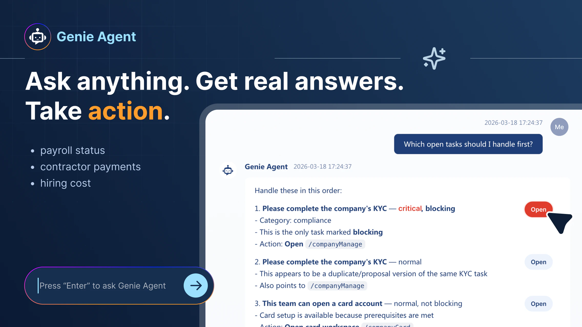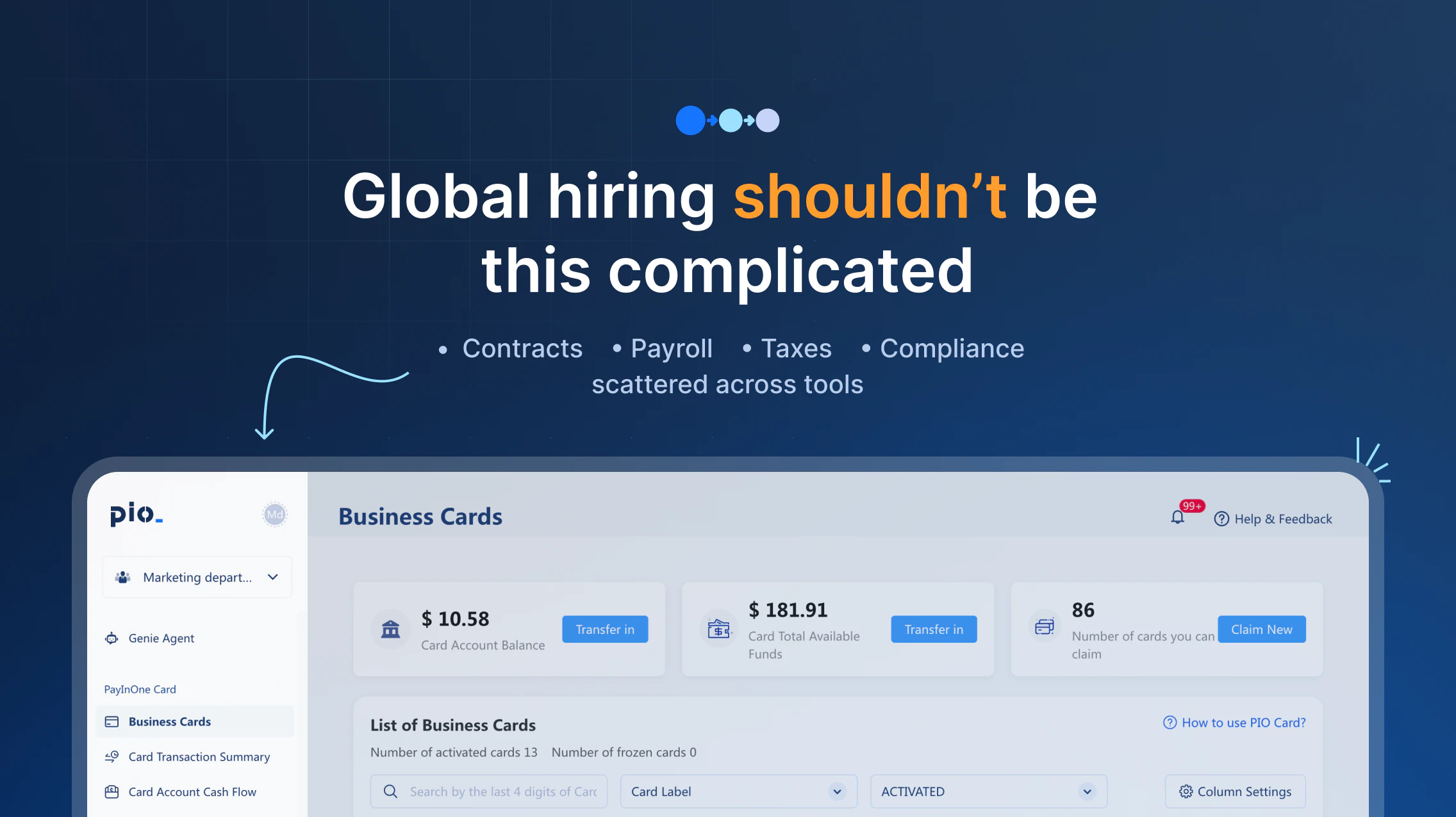 PIO helps you hire, onboard, and pay talent in 150+ countries without setting up entities. It brings payroll, compliance into one system. With PIO Agent, payroll becomes something you can simply ask. From contractor payments to EOR or the real cost of hiring in another country, you get answers instantly and take action in the same