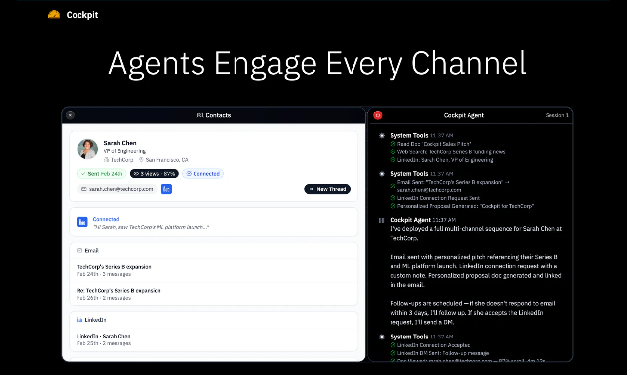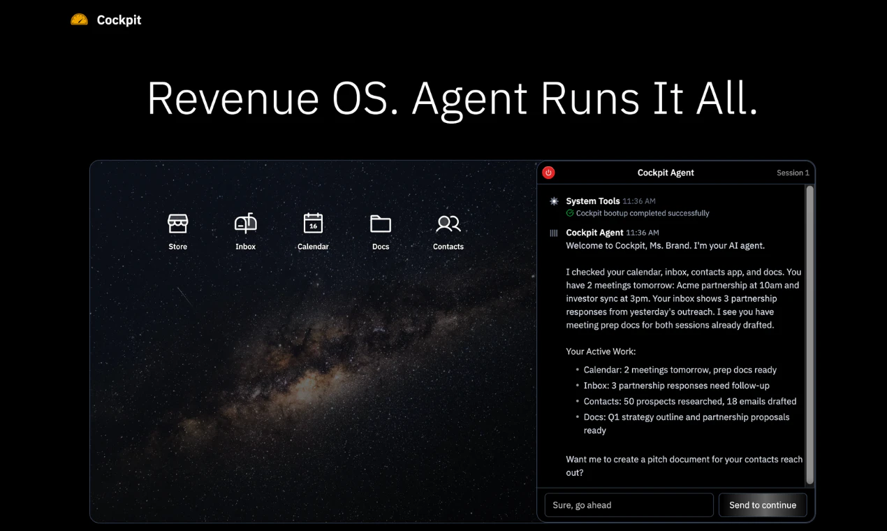 Deploy AI revenue agents that research prospects, personalize outreach, follow up across channels, and book meetings using your inbox, contacts, docs, and calendar.