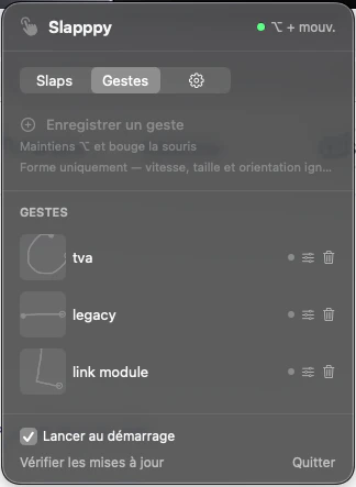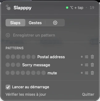 Slapppy is a native macOS menu bar app that turns your trackpad or mouse into a shortcut engine. Hold Option, tap a rhythm, and it fires a keyboard shortcut, pastes text, or triggers a virtual key (F13–F20). Record your own patterns — the matching engine handles sloppy timing. No more memorizing Cmd+Shift+Ctrl+K. Works with any Mac, not just MacBooks. Built in Swift, one-time purchase (€9.98), no subscription.