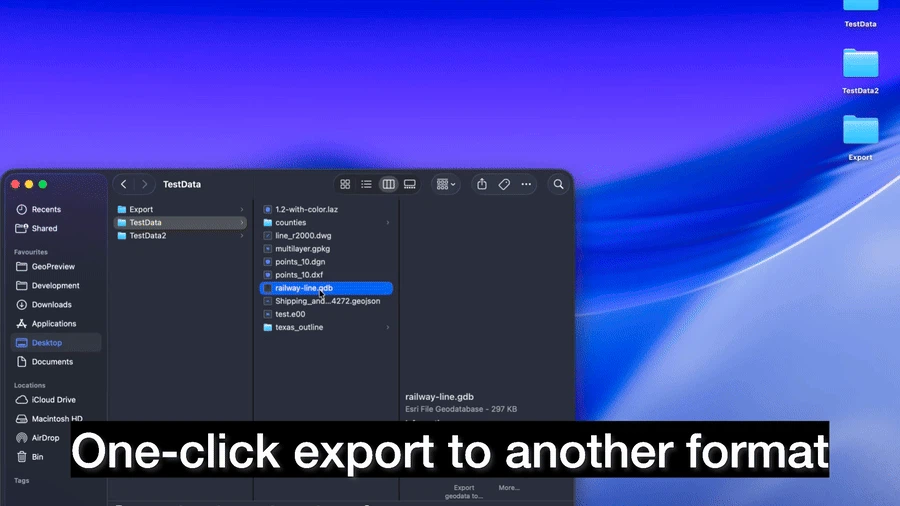 GeoPreview lets you preview geospatial files directly in Finder on macOS. Instead of opening QGIS just to check a file, just press Space and instantly see it on a map. Supports GeoJSON, Shapefile, GeoPackage, KML, GPX, LAS and more. Includes: • attribute table view • multi-layer support • dataset folder preview (.gdb, shapefile folders) • export to other formats Everything runs locally — no uploads, no tracking.