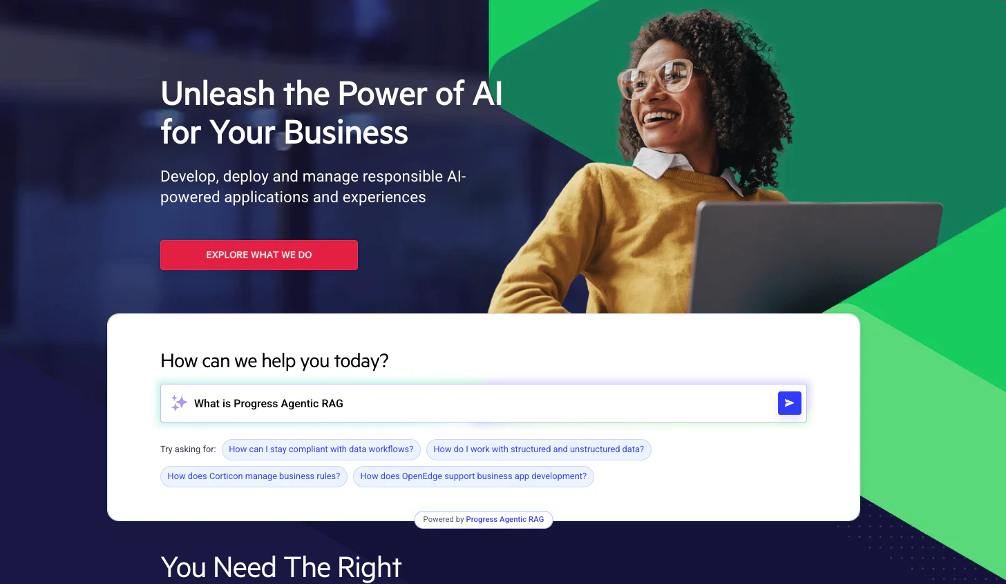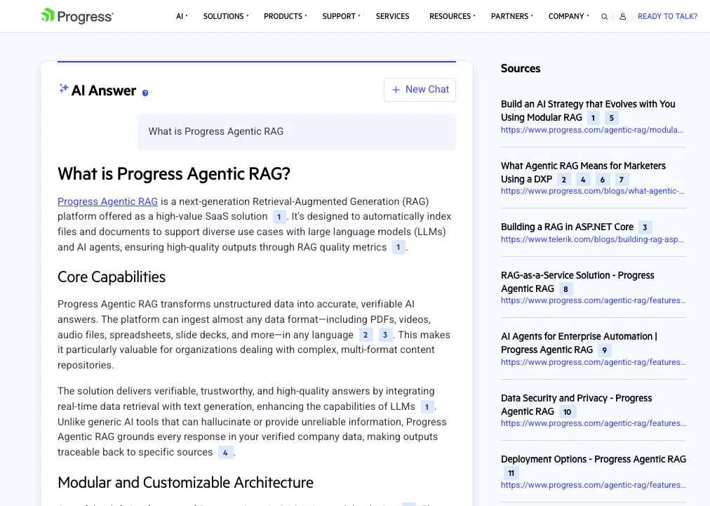 Progress Agentic RAG is an enterprise‑grade RAG‑as‑a‑Service platform that transforms documents, videos, and data into trusted, verifiable AI answers. It combines retrieval, reasoning, and orchestration with source‑level citations, built‑in quality metrics, and LLM flexibility. Deploy AI‑powered search, assistants, and workflows in days without complex pipelines or vendor lock‑in.