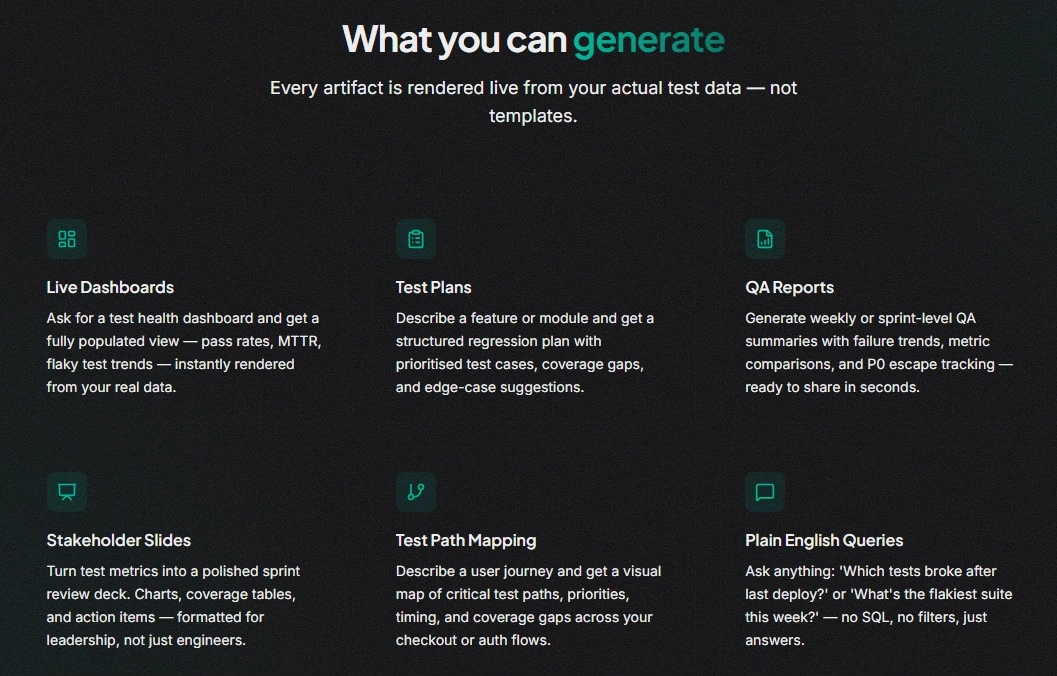 Every QA debug loop looks the same — CI fails, you open logs, Slack, Jira, Grafana. 45 minutes later, still no root cause. Ask AI fixes that. Type a question, get a rendered artifact — dashboards, sprint reports, test plans, stakeholder slides — built from your live Playwright data. No queries. No config. Just answers. Free 14-day trial. No credit card. Built by the founding team behind LambdaTest Test Insights.