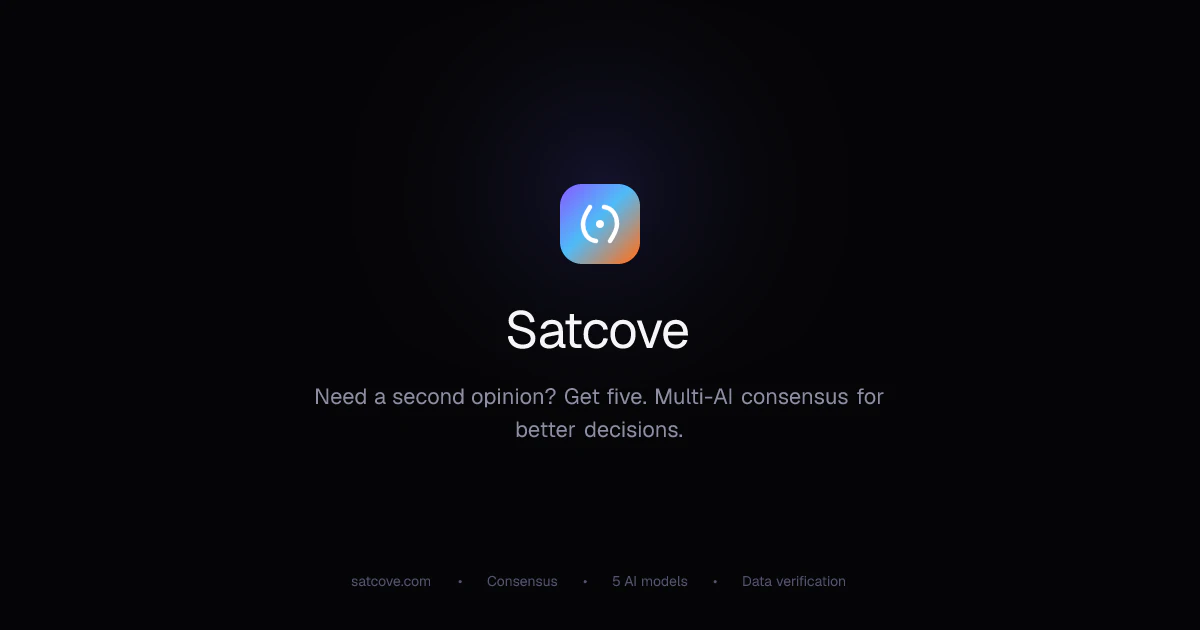 Most AI tools give you one answer. Satcove gives you five — simultaneously. Claude, GPT-4o, Gemini, Mistral and Perplexity are queried in parallel. You get a structured consensus report with an agreement score, clear divergences, and one actionable recommendation. No more wondering if your AI is right. Now you know.